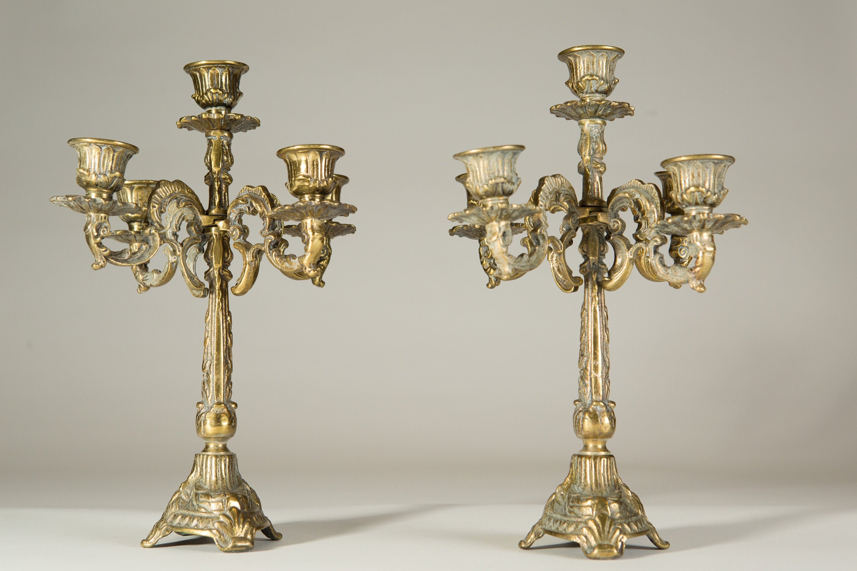 Antique Brass Metal Leaves Taper Candle Holders | Painted ... from paintedfoxhome.com Each dark green painted wire arm has a lovely glass ball hanging. We can make your custom design. Shop the brass candle holders collection on chairish, home of the best vintage and used furniture, decor and art. Candle holders & candlestick holders. Azuregreen brass chamberstick tapered candle holder. Buy antique brass candlestick holders and get the best deals at the lowest prices on ebay! Large antique neoclassical gold color bronze 6 arm candle or electric chandelier. ✅ browse our daily deals for even more savings!