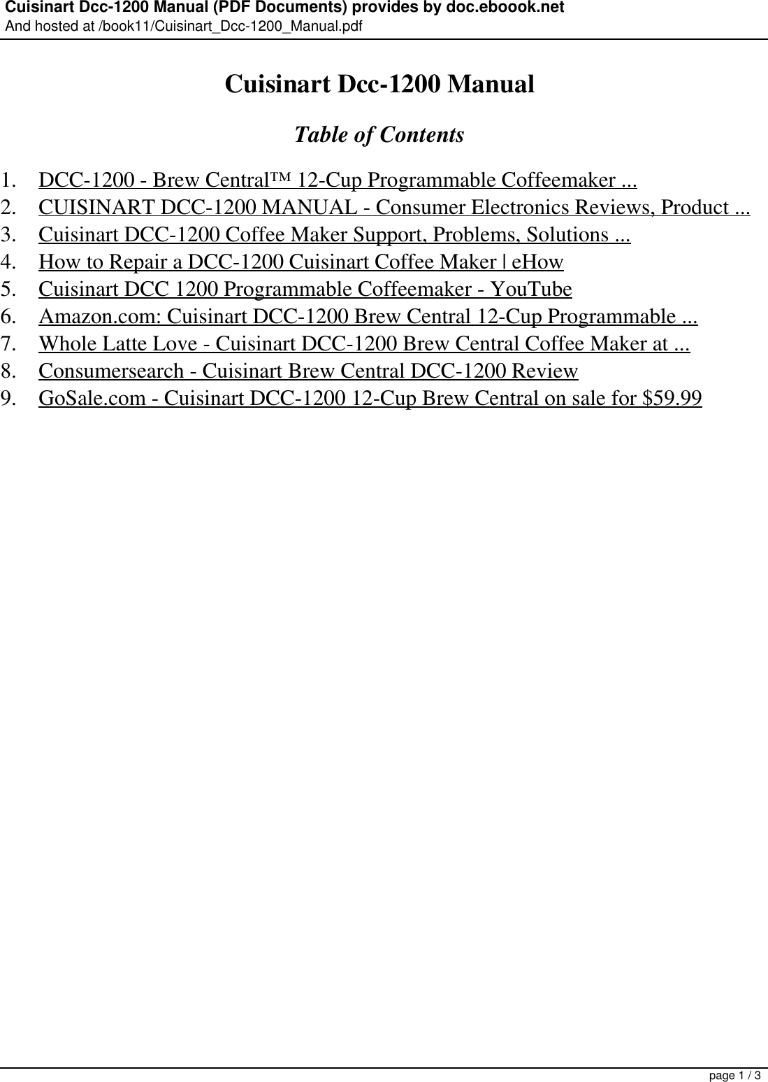 Cuisinart Coffee Maker Manual V1 Lenze Com Tr from pdfasset.owneriq.net This manual is available in the following languages: Download 178 cuisinart coffee maker pdf manuals. Perfect brew 12 cup coffee maker black. The coffeemaker was released in 2015 by cuisinart. Takeya cold brew coffee maker user guide takeya cold brew coffee maker user guide included use +.; I love coffee if you do to then you'll like this cuisinart coffee maker review. This manual comes under the category coffee makers and has been rated by 1 people with an average of a 7.5. Cuisinart coffee maker manuals 163 devices / 187 documents # model type of document;