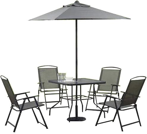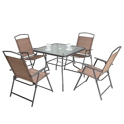 (22) total ratings 22, $185.59 new. Tempered glass top with umbrella whole. Jaxx ponce outdoor bean bag patio chair for $164.69 2 christopher knight home anson outdoor steel chairs for $139.98 mainstays albany lane outdoor patio 5 piece dining set for $97.00 14 new & refurbished from $182.98. Bistro set glass top table bar height chairs outdoor patio furniture deck 3 pcs. Water wave tempered glass top. 0.59l x 0.59w x 86. 33.8l x 33.8w x 27.5hproduct weight: This set is available in three color options to fit your patio needs. 6 pc outdoor patio dining set folding furniture durable powder coated w umbrella. 4.1 out of 5 stars. The mainstays albany lane outdoor patio 6 piece dining set, black frame and black sling, 4 person seating is very traditional folding set, included 4 pieces sling folding chairs and 1 glass table. Ratings, based on 5 reviews.