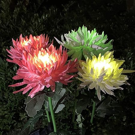 Sanhee 3pack solar lights outdoor garden waterproof chrysanthemum solar powered flowers stake lights, 31 inch solar garden lights landscape pathway light for patio yard decor (white+pink+yellow) 3.5 out of 5 stars 19 ( 0.0 ) stars out of 5 stars write a review Camking solar garden lights chrysanthemum flower stake lamp yard outdoor decor. Perfect for use where conventional electrical supply is unavailable. 2pcs solar outdoor stake lights waterproof lawn light led decorative ground plug lamp (white light).